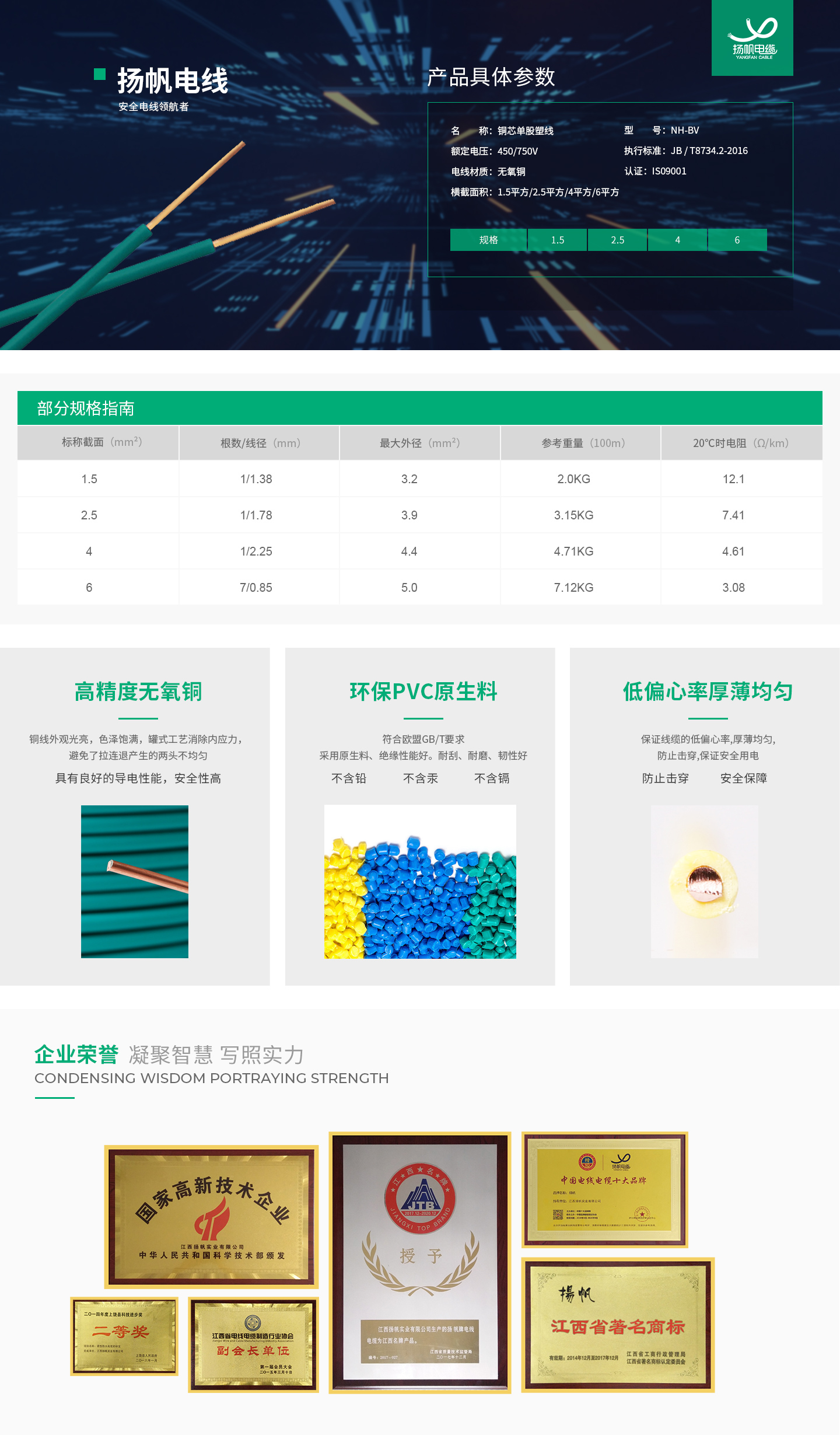 耐火電線NH –BV1.5/2.5/4/6平方